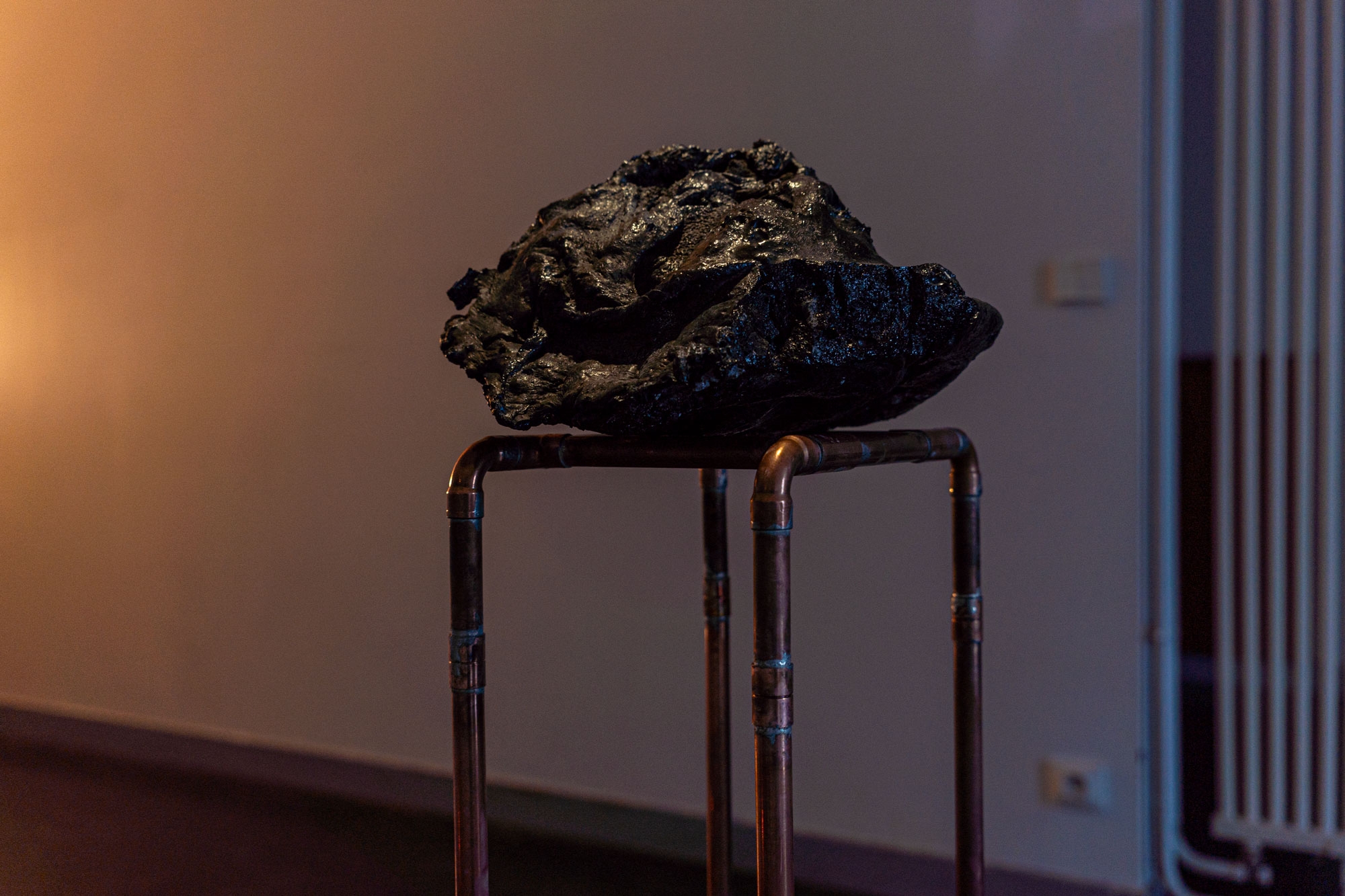 The series has several versions: the small ones were melted into ceramic sculptures that function as ovens. While in a furnace for melting metals, the recovered stones were joined together into a larger body.